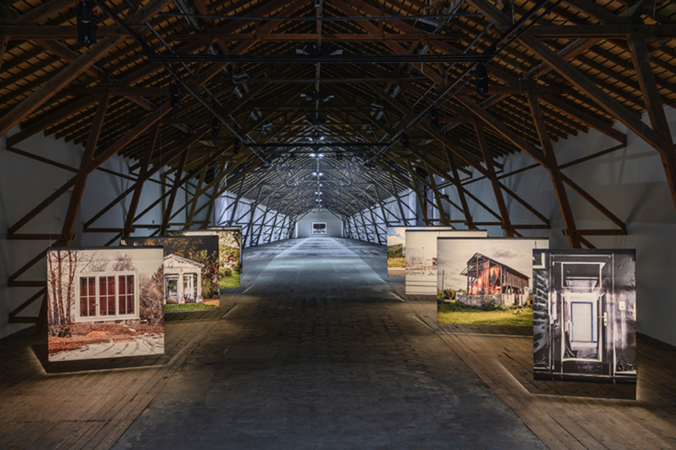 Une grange infinie qui se redouble d’image en image ; une vague qui déferle du plafond et roule jusque dans la nef. Le photographe Olivier Lovey modifie l’espace la Ferme-Asile en installant deux gigantesques trompe-l’œil. Réalisé in situ, ce travail photographique à l’échelle du lieu met en jeu la perspective, modifie notre perception spatiale et questionne les frontières entre image et architecture.