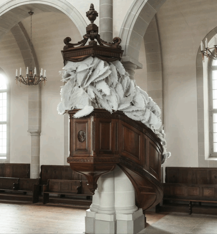 Installation monumentale de l’artiste vaudoise Leah Linh, «La Chute des Anges» convoque des matériaux abandonnés à la charge symbolique forte dans une esthétique à la fois brute et poétique. Elle interroge notre quête de sens dans une époque d’instabilités et de crises politiques et écologiques.
